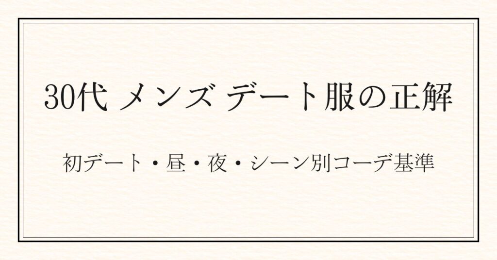 結論:30代メンズのデート服の正解は「相手と場所に失礼がない服」 先に結論から言います。30代メンズのデート服における正解は、おしゃれに見せることではなく、TPOを理解していると伝わる服です。派手さや流行は必要ありません