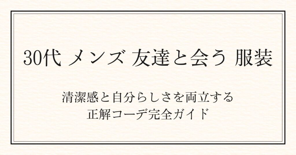 結論:清潔感ある「好きな服」が正解 30代で友人と会う時は、自分が心地よく着られる服装+清潔感の組み合わせが最も重要です。 仕事やデートと違い、友人との時間は最も自由度が高く、自分のファッション感覚を素直に表現できる貴重