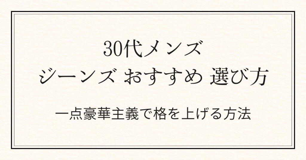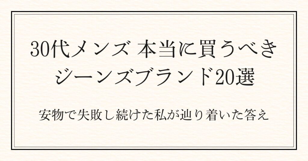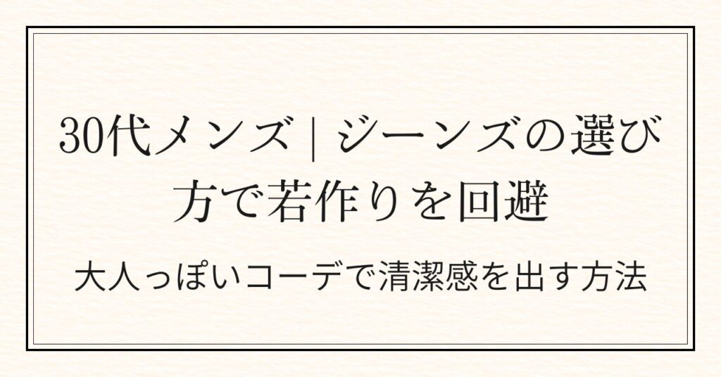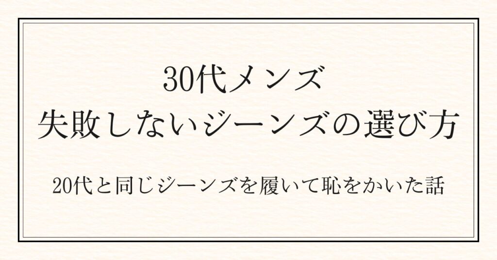 30代のジーンズ選びで、こんな経験はありませんか? 「なんとなく買ったけど、なんか違う」 「何本あっても、しっくりくる一本がない」 実はその原因は、選び方の”基準”がないことです。 本記事では、30代メンズのジーンズ選び