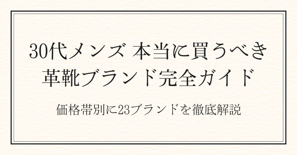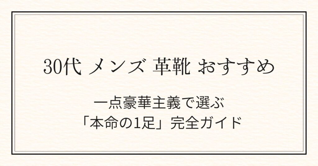 30代メンズ革靴おすすめ|一点豪華主義で選ぶ「本命の1足」完全ガイド