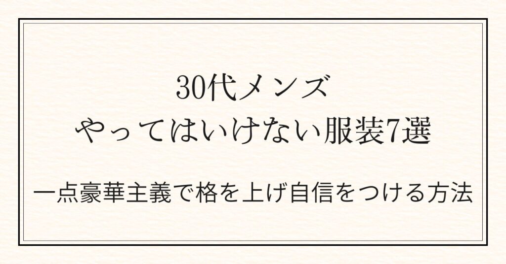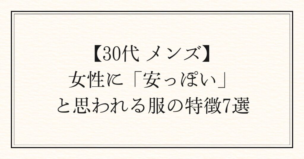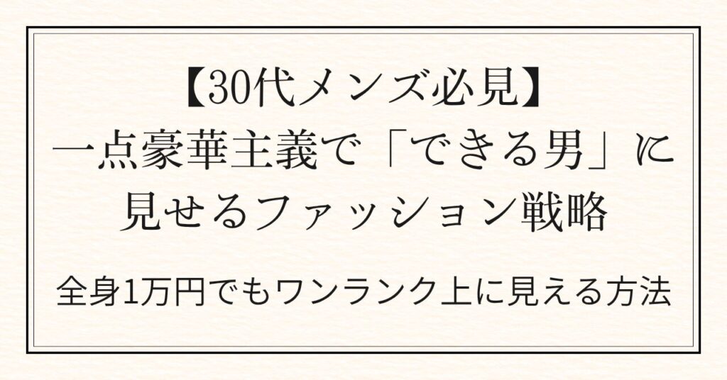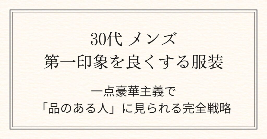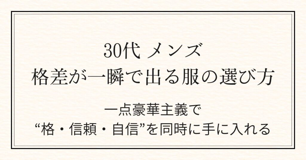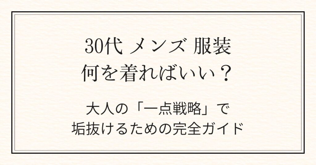 30代になると、服に悩む機会が増えます。 「もっとちゃんとした服を買わないといけないのかな」「全部揃え直したら、いくらかかるんだろう」 そんなふうに考えながら、結局何も変えられていないそういう方、けっこう多いんじゃないか