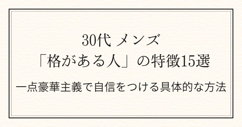 「格がある人って、何が違うんだろう」と思ったことはありませんか。 見た目が特別派手なわけでもないのに、なぜかその場の空気が変わる人。高いものを身に着けているわけでもないのに、なぜか「この人と一緒にいると背筋が伸びる」と感