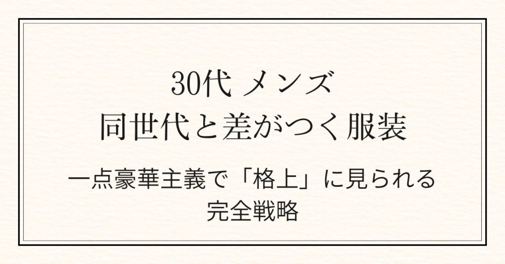 30代になって、なんとなく感じる違和感がある。同じような服を着ているはずなのに、「なぜかあの人はちゃんとして見える」「自分はどこか物足りない」。 それはセンスの差でも、収入の差でもありません。実はもっとシンプルで、誰でも